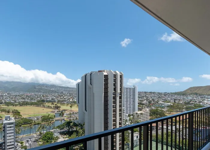 Descubre el encanto de Honolulu en el 21st Floor Condo With View of Ko'Olau Mountains and the Ala Wai Canal. Situado en el vibrante vecindario de Waikiki, este apartamento de un dormitorio ofrece vistas impresionantes a las montañas Ko'olau y al canal Ala Wai, proporcionando un salón perfecto para relajarte después de un día de exploración. Aquí, la comodidad se une a la elegancia, con un diseño moderno y acogedor.